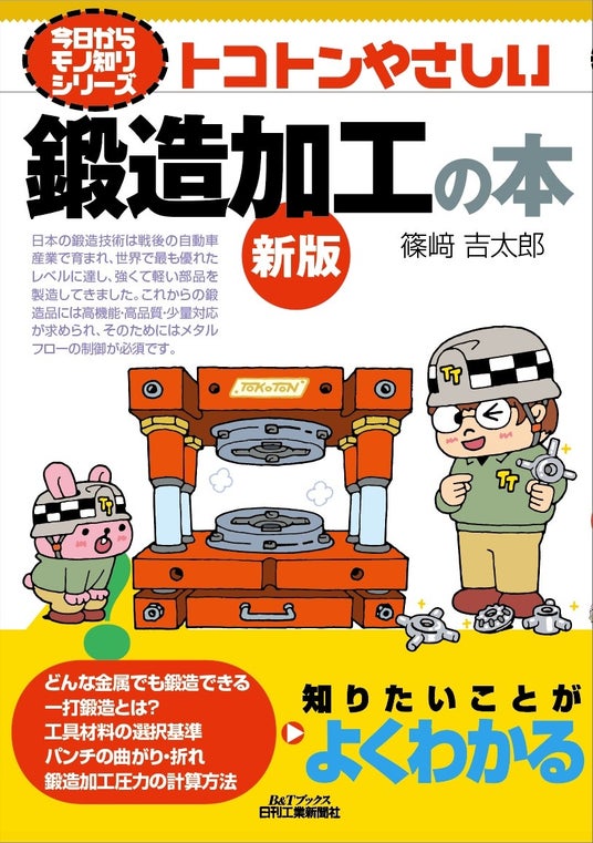 日刊工業新聞社(代表取締役社長:神阪拓 本社:東京都中央区)は、書籍『今日からモノ知りシリーズ トコトンやさしい鍛造加工の本 新版』(篠崎吉太郎著)を発売します。鍛造は、固体の金属を工具や金型などを用いて打撃し、部品にする加工技術です。成形性を確保するため素材を加熱して軟らかくする熱間鍛造で始まりましたが、やがて室温のまま加工する冷間鍛造技術が開発されると、わが国でも1960年頃から自動車産業を中心にこの方式が広まっていきます。冷間鍛造技術は、産業立国として日本の地位向上に貢献したとも言われています。