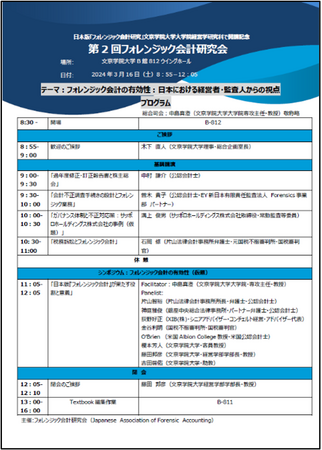 テーマ :フォレンジック会計の有効性:日本における経営者・監査人からの視点 プログラム