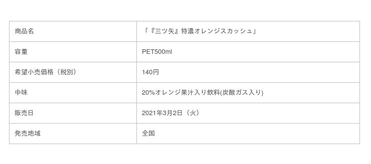 アサヒ飲料株式会社(本社 東京、社長 米女 太一)は、「『三ツ矢』特濃オレンジスカッシュ」PET500mlを3月2日(火)より全国発売します。