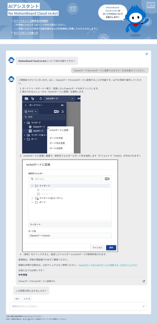「AIアシスタント for MotionBoard Cloud re:Act」