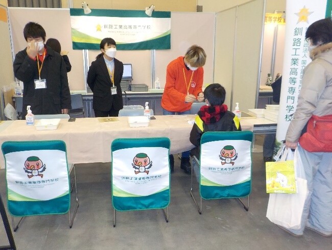 本イベントは、「地域なくして企業はあらず」という理念のもと、釧路地域工業振興協会が30年ほど前から隔年で実施している地元企業の出展イベントで、市民に「ものづくり」に携わっている企業についてより深く知ってもらうことを目的に開催されています。「くしろ冬まつり」と同時開催される本イベントには、毎回多くの方にご来場いただいています。来場者にとっては、普段目にすることがない機械や最新技術に触れるまたとない機会となり、会場は熱気にあふれていました。本校・釧路高専や専門高校等の教育機関のほか、20を超える企業がブースを構え、来場者に「ものづくり」の楽しさを伝えました。
