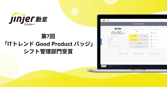 jinjer株式会社(本社:東京都新宿区 代表取締役社長:桑内 孝志)が提供するクラウド型勤怠管理システム「ジンジャー勤怠」は、株式会社Innovation & Co.(本社:東京都渋谷区、代表取締役社長:齊藤 和馬)が提供する法人向けIT製品・サービスの比較サイト「ITトレンド」が発表するGood Productバッジをシフト管理部門で受賞したことをお知らせします。