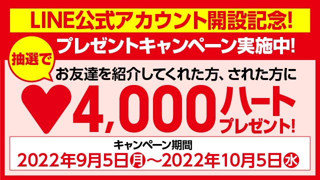 ・賞品内容:2.抽選で1,000組(計2,000名)様にさらに3,000ハート