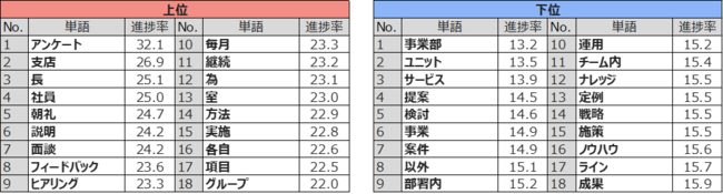 【1】アクションプランの進捗率が上位の単語は行動が明確なもの、下位は曖昧なものが多い