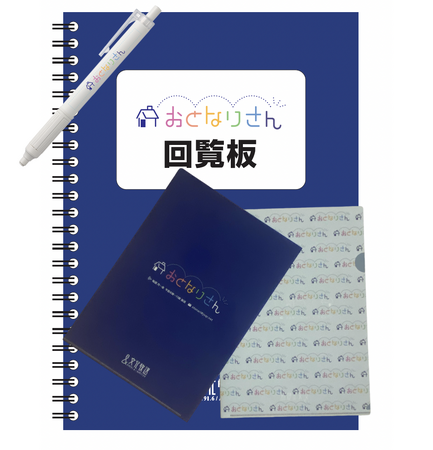 ◆『おとなりさん』回覧板風ノート・ペンセット(1200円)/おとなりさんエコボトル(2500円)