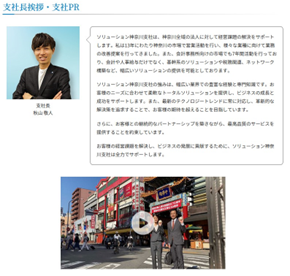 今回、より地域に密着した情報発信強化のプロジェクトの一環として、コーポレートサイト内の「全国事業所のご案内」ページのリニューアルを行いました。お客さまにより身近な存在として親しみを感じていただくとともに、安心感・信頼感を高めるため、支社・営業所ごとのご案内ページに、従来から記載のあった所在地や電話番号、地図情報に加え、支社長・営業所長の写真とメッセージのほか、受付やオフィス、そこで働く社員など支社・営業所の雰囲気や様子が分かる写真や動画を多数掲載しています。