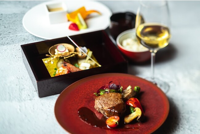 ディナー会場の平安神宮会館では、京都の地元食材を贅沢に使った和洋折衷料理をご用意。フレンチの技法をもとにこの日のためだけのコース料理に仕立てます。ゆったりと時が流れるような空間で、旬の和と洋の美味を盛り込んだ美食のひとときを存分にお愉しみください。