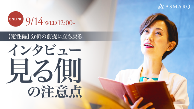 株式会社アスマーク(東京都渋谷区東、代表取締役:町田正一)は、株式会エスアールエー(東京都港区)の代表取締役:角 泰範氏を講師に迎え、2022年9月14日(水)12:00に「インタビュー調査を見る際の注意点やコツ」をテーマに、定性調査に特化したセミナーを開催します。
