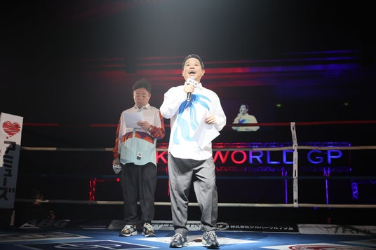 ・ユースケさん「選手の身長をアナウンスするときに、”センチ”でいいのに”センチメートル”まで言うてしまいましたけど(笑)、ちゃんとできました。リングは思ったよりも小さかったですね。血が落ちてましたし、(お笑いの)劇場とおなじ感じがしました。」と話し、津田さんが「どこがやねん。血を流す舞台なんてないやろ」とツッコミ。