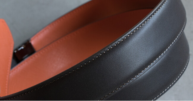 柔軟性が高い革を両面に、中の芯材にゴム帯を使用することで、立つ・座るといった人の動きに合わせて帯自体が伸縮する本革製のベルトです。常に体にフィットし続けるため、穴を緩めて締め直す必要がありません。