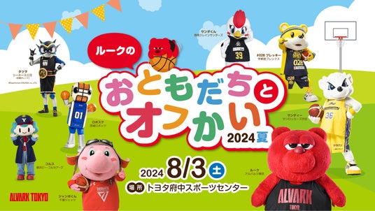 この度、アルバルク東京では、アルバルク東京のマスコット「ルーク」が主催し、2023-24SEASONのB1近隣クラブのおともだちマスコットと一緒にミニ運動会、レクリエーション等を実施する「ルークのおともだちとオフかい 2024夏」を開催させていただくことが決定しましたのでお知らせいたします。