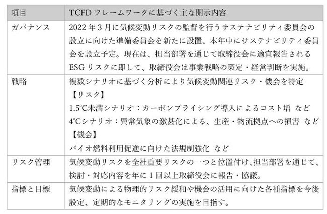 株式会社ユーグレナ(本社:東京都港区、代表取締役社長:出雲充)は、2022年3月15日、TCFD※1が提言するフレームワーク、「ガバナンス」「戦略」「リスク管理」「指標と目標」の4項目に基づいた情報を開示しました。
