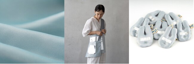 「森村泰昌さんはいろいろな名画に変身するアーティストだから『顔』をテーマに考えました」とひびのこづえさん。斜めがけバッグに、顔を映す鏡に見立てた銀色の箔プリントがされています。