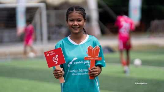 カンボジアでは、男子/男性の教育や就職の機会が優先される傾向があり、スポーツにおいてもスポーツは男性がするものというジェンダーに基づく偏見があり、10代の少女がスポーツを辞めてしまう率は少年の2倍に上るという統計もあります。ジェンダーに基づく差別や偏見に加えて、教育のレベル、暮らしぶり、家庭環境による分断があり、ワールド・ビジョンが実施した調査では、周囲の仲間と前向きで安心できる関係性を築けていると答えた若者は34%に留まりました。ジェンダー、人種、障害の有無などに基づく偏見やステレオタイプから起こる差別は、不平等を生み、一人ひとりの発達を妨げます。女子であることや、障害があることにより弱い立場に置かれた若者は、自分自身の権利に気付かず、社会サービスや社会参加の機会から疎外されがちです。ワールド・ビジョン・カンボジアでは、すべての活動の参加者の4割が女性・少女であることを目的に掲げています。今回の大会にも多くの女子が参加しました。