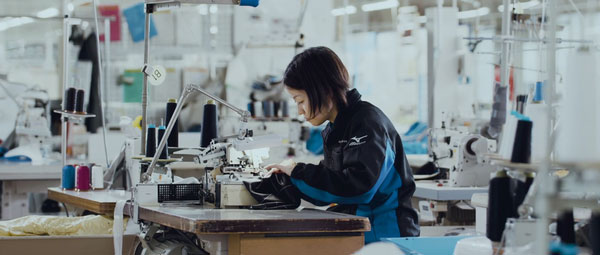 選手のパフォーマンスをサポートする国内開発・生産体制ミズノはスピードスケートのレーシングスーツを、スポーツ庁からの委託事業として、公益財団法人日本スケート連盟、独立行政法人日本スポーツ振興センターハイパフォーマンススポーツセンターと共同で開発しています。レーシングスーツは、国内のミズノ自社工場「ミズノテクニクス(株)氷上工場」(兵庫県丹波市氷上町)で開発サンプル製作から生産を行い、大会や合宿地などで選手の要望に応じた微調整などを行っています。長年培ってきたカッティング製法や卓越したクラフトマンの縫製技術を活かして、選手がベストなパフォーマンスを発揮できるようサポートします。