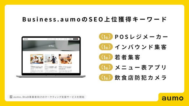 BtoB事業者向けメディアBusiness.aumoでは、「POSレジメーカー」や「インバウンド集客」などのキーワードでSEOの上位順位を獲得※2し、それらの記事にサービスや商品の情報を掲載することで、事業者の効果的なマーケティングの実現に貢献しています。
