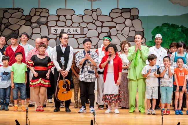 子どもたちが個性豊かな大将の似顔絵を描いて大将にツッコまれたり、ダンスを披露したりと大活躍の中、負けじと大人たちも歌や人文字など、オーディションのシーンでは独特な自己アピールを披露。特に町民・田中さんによる体を張ったパチパチパンチソックリのギャグ、“グルグルパンチ”はかなりの盛り上がりを見せていました。また、急きょ参加となったヤンシー&マリコンヌもオーディション参加者として登場。サプライズ出演にもかかわらず大歓声で迎えられ、得意のリンボーダンスを披露していました。