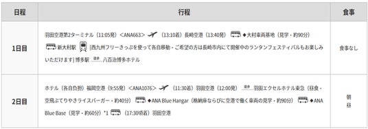 往復航空券+宿泊、ならびに「大村車両基地見学」と「羽田空港での格納庫見学」、