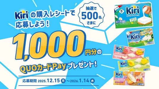 株式会社クオカード(以下当社、本社:東京都中央区、代表取締役社長:近田 剛)が展開するスマートフォンで使えるデジタルギフト「QUOカードPay(クオ・カード ペイ)」は、株式会社トクバイが株式会社アルファおよびベル ジャポン株式会社の協力の元、12月15日(月)より開催する「キリ(R)シリーズを買って当てよう!QUOカードPay1,000円分が500名様に当たる!」キャンペーンで採用されました。本キャンペーンでは、期間中に対象のキリ(R)シリーズ1品以上を購入し、応募フォームから購入レシートをアップロードして応募すると、オリジナルQUOカードPay1,000円分が抽選で500名様に当たります。