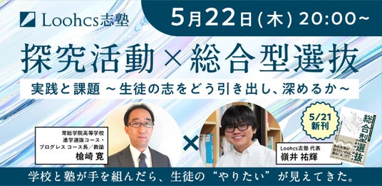 Loohcs株式会社(代表取締役社長:嶺井祐輝)は、2025年5月22日(木)に、教員向けのオンラインイベント「学校と塾の新しい連携モデル―探究活動を通じた総合型選抜対策の最前線」を開催します。本イベントでは、総合型選抜を見据えた探究活動の指導法と、学校と塾の新しい連携モデルを提案します。