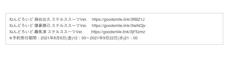 株式会社グッドスマイルカンパニー(本社:東京都千代田区、代表取締役社長:安藝 貴範、以下 グッドスマイルカンパニー)は、劇場版『僕のヒーローアカデミア THE MOVIE ワールドヒーローズミッション』より、「緑谷出久」「爆豪勝己」「轟焦凍」をねんどろいど化し、2021年8月6日(金)から予約開始いたしました。