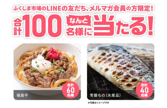 キャンペーン期間中、ふくしま市場公式LINEの友だち追加・メルマガ登録をいただいた方の中から抽選で合計100名様に福島県産品が当たるプレゼントキャンペーンを同時開催!