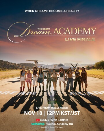 HYBEとGeffen Recordsによるグローバルガールグループデビュープロジェクトの最終ステージ「The Debut: Dream Academy - Live Finale」が、11月18日正午(日本時間)に米国ロサンゼルスのXRスタジオで行われることが発表されました。7ヶ国から集まった10人のファイナリストがデビューという夢のための最後の関門に挑戦する姿を、日本ではABEMAで生配信します。