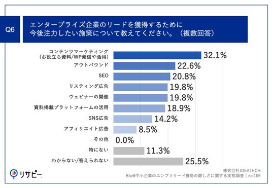 Q6.エンタープライズ企業のリードを獲得するために今後注力したい施策について教えてください。(複数回答)