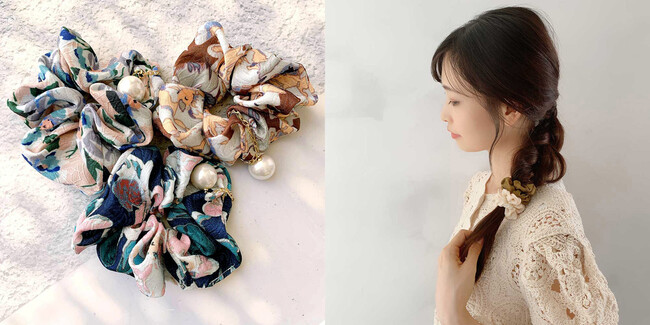 シュシュやワイヤーポニー・リボンなどトレンドのヘアアレンジには欠かせないアイテム。