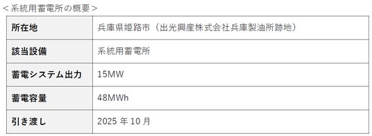 日揮ホールディングス株式会社(代表取締役会長兼社長CEO 佐藤 雅之)は、国内EPC事業会社である日揮株式会社(代表取締役社長執行役員 山口 康春。以下「日揮」)が、出光興産株式会社などが同社兵庫製油所跡地で推進する系統用蓄電池事業向けの蓄電池設備の設置工事(以下「本プロジェクト」)を完工したことをお知らせします。また、本日11月10日に兵庫県姫路市の同社兵庫製油所跡地内で竣工式が執り行われました。