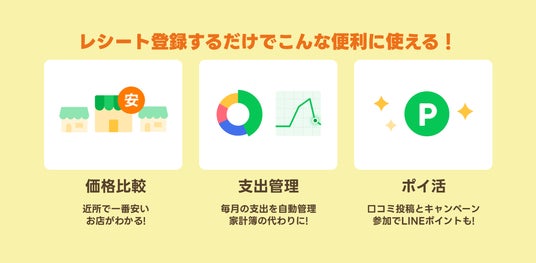 支出の見直しや日々の買い物をサポートするレシート管理サービスです。コミュニケーションアプリ「LINE」のウォレットタブから誰でも無料で利用できます。レシートを撮影するだけで、支出管理と購入履歴の記録が手間なくでき、誰でも直感的に操作が可能です。支出管理に加え、価格比較ができる「ショッピングサポート」により日々のお買い物をサポートします。今後も、買い物の煩わしさを解消し、日常の買い物をさらに身近で便利なものにしていきます。