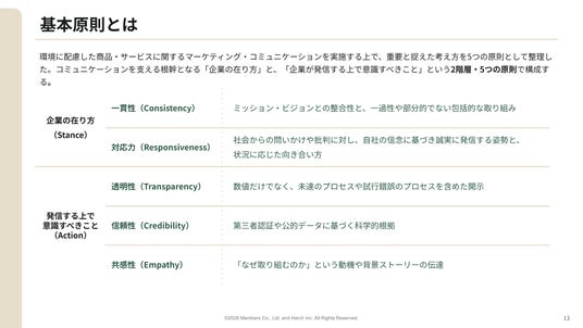 DX現場支援で顧客と共に社会変革をリードする株式会社メンバーズ(本社:東京都中央区、代表取締役社長:高野 明彦、東証プライム:2130、以下「メンバーズ」)は、ハーチ株式会社(本社:東京都港区、代表取締役:加藤 佑)、サステナブル・マーケティング研究会(リーダー:駒澤大学 経営学部 教授 青木 茂樹)と共同で、グリーン製品・サービスを適切かつ魅力的に社会に発信する指針や手法をまとめた、企業のコミュニケーション実務者向け「グリーン マーケティング ガイドライン」を公開したことをお知らせします(※1)。