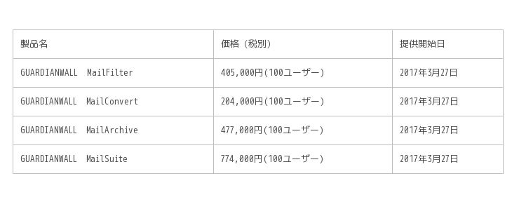 < GUARDIANWALL Mailファミリー 製品詳細 >