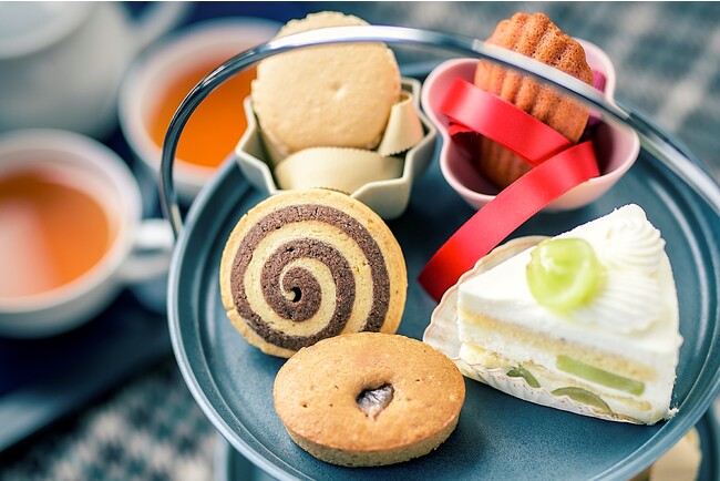 今年の秋は、口当たりが滑らかなホイップクリームにマスカットの爽やかさが相性抜群のショートケーキやしっとりとした味わいのマロンケーキなど秋の味覚が楽しめるアフタヌーンティーが登場。他にも、たっぷりとバターが使われ渦巻模様が特徴のサクサク食感のオレンジサブレ、表面はさっくりと中は濃厚なバニラが楽しめるマカロン、フランボワーズの風味が広がるしっとり上品なマドレーヌの全5種類をご用意しました。(※マスカットのショートケーキは10月16日以降、苺のショートケーキへ変更となります。)本格的なフランス菓子をホテルセレクトの紅茶と一緒にお楽しみください。