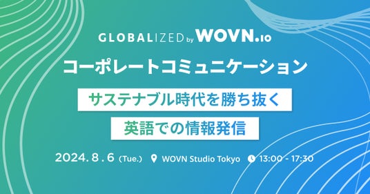 Web サイト多言語化ソリューション『WOVN.io(ウォーブン・ドットアイオー)』を提供する Wovn Technologies株式会社(本社:東京都港区、代表取締役社長:林 鷹治、以下 WOVN)は、2024年8月6日(火)13時から、広報担当者向け GLOBALIZED『サステナブル時代を勝ち抜くコーポレートコミュニケーション戦略 ~企業価値を向上させる英語での情報発信とは~』を無料開催いたします。