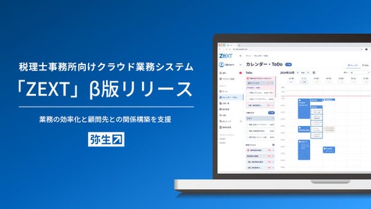 弥生株式会社(本社:東京都千代田区、代表取締役 社長執行役員 兼 CEO:武藤健一郎、以下「弥生」)は、税理士事務所向け業務システム「ZEXT(ゼクスト)」のβ版をリリースしたことをお知らせします。ZEXTは税理士事務所の業務に特化したクラウドサービスで、顧問先管理、生産性向上、顧問先に対する経営支援を効率化およびサポートします。