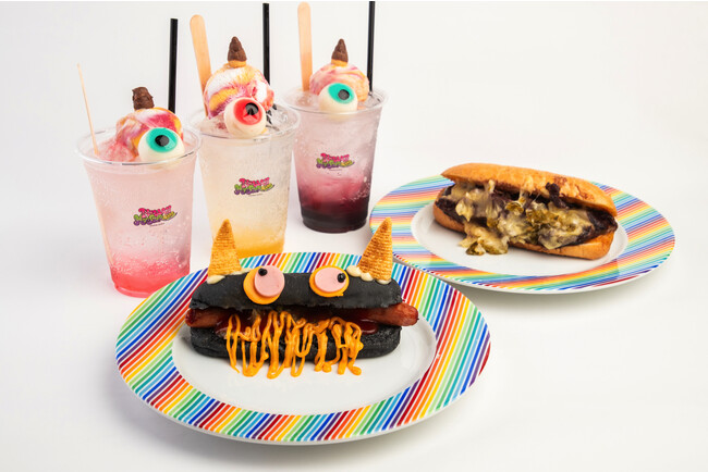 10月19日(木)~22日(日)は、ホットドッグ専門店「HOTDOG CAFE STAND STATION TOKYO(ホットドッグカフェスタンド ステーション東京)」とコラボレーションしたフードを提供。モンスターがソーセージをくわえたクレイジーな「モンスタードッグ」、ジューシーなテンダーロイン牛とチーズをたっぷり挟み込んだモンスター級ボリュームの「フィリチーズステーキ」などの限定メニューが登場します。