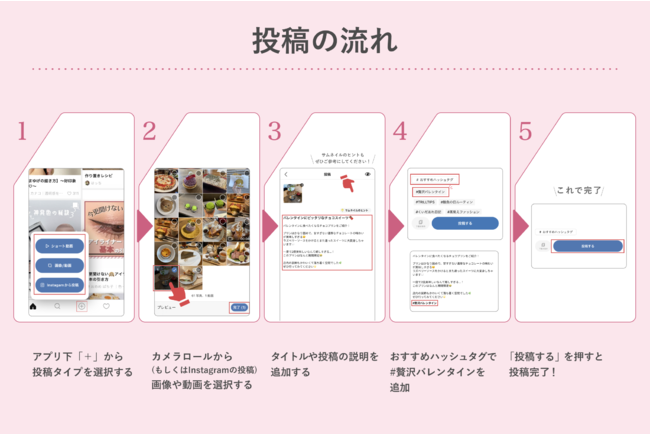 バレンタインにしたいメイクやヘアアレンジ、おすすめのファッションアイテム、バレンタインに関連した最新グルメ情報やバレンタインに友達や自分にプレゼントしたいアイテムの投稿など、バレンタインにまつわる贅沢な投稿をお待ちしております。