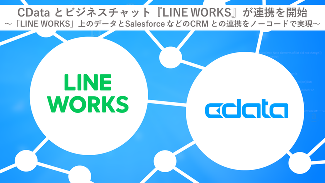 2022年9月6日、CData Software Japan 合同会社(本社:アメリカノースカロライナ州、日本オフィス:宮城県仙台市、代表社員 職務執行者 疋田 圭介、以下CData)と、ワークスモバイルジャパン株式会社(東京都渋谷区、代表取締役社長 増田 隆一、以下ワークスモバイルジャパン)は、『CData』と『LINE WORKS』が連携を開始したことを発表します。汎用コネクタ『CData API Driver』で利用する「LINE WORKS」向けの事前定義API Profileのリリースにより、「LINE WORKS」上のデータをSalesforceやDynamics 365といったCRMへの連携を実装し、顧客データのシームレスな活用を実現します。