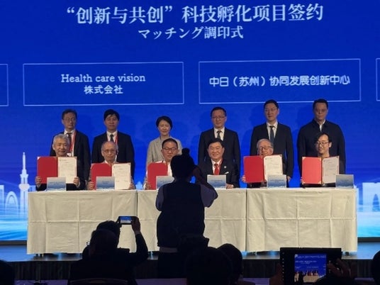 また、セレモニーパートでは、過去1回目から3回目のサミットでピッチ、ポスター出展に参加したプロジェクトの中から、蘇州市を含む長江デルタ―地域でのグルーバル展開に取り組む5社、および蘇州現地企業2社の7社により、グローバルオープンイノベーション活動支援に関する交流と連携強化の基本合意書が締結されました。これらの取り組みから、過去には藤田医科大学との人材育成や認知症ケアセンターの共同設立などの実績も生まれています。