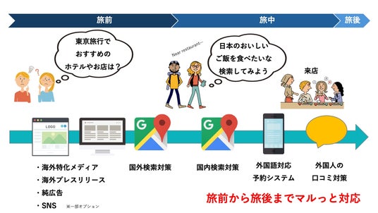 訪日前の情報収集段階から多言語対応のメディアを活用することで、外国人ユーザーへのアプローチが可能です。この取り組みにより、日本を訪れた際の来店候補として、店舗の認知が促進されます。