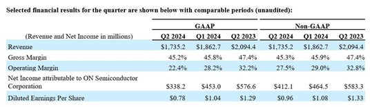 オンセミ(onsemi、本社 米国アリゾナ州スコッツデール、Nasdaq: ON)は、2024年度第2四半期の決算結果を発表しました。主なハイライトは以下のとおりです。