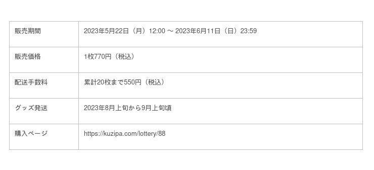 ※当選された商品は、通常のくじの当選商品と同梱し、お届けいたします。