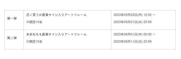 ※規定数は最大数であり、当選者数が規定数に達しない場合でも、抽選期間が終了した場合そのまま終了いたします。