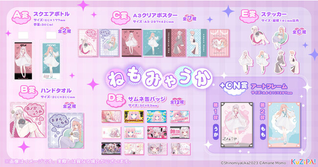グッズは全てねもみゃうかの2人が考案。かわいらしさにあふれる2人の世界観を表現し、KuZiPA!先行で今回が初だしとなるイラストを8点使用しています。さらに2人の直筆サイン入りグッズ展開も史上初!初めてづくしの限定グッズを、この機会にぜひゲットしてください。