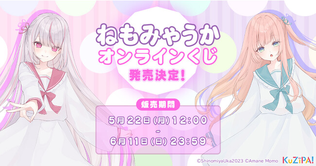 株式会社HIKE(本社:東京都新宿区、代表取締役:三上政高/梁俊模)は、運営する ハズレなしの オンラインくじサービス「KuZiPA!」において、注目のVtuber 「恣ノ宮うか」と「あまねもも」のユニット「ねもみゃうか」のグッズ情報を公開しました。5月22日(月)12時より販売開始します。