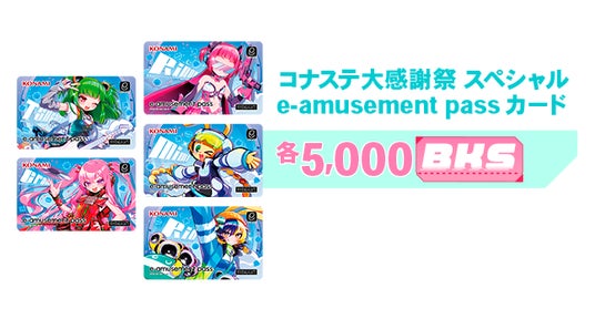 「e-amusementサイト」内の「購買部」で対象のコナステ版「BEMANI」タイトルの「楽曲パック」や「ゲーム内アイテム」などの対象アイテムを購入したり、KONAMIのオンラインプライズゲーム『コナプラ』をプレーしたりすることで獲得できる「BKS」をためると、「コナステ大感謝祭スペシャルアクリルスタンド」や「コナステ大感謝祭スペシャルe-amusement passカード」がもらえます。