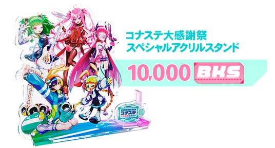 2.たまった「BKS」をキャンペーン公式サイトで交換すると「コナステ大感謝祭スペシャルアクリルスタンド」や「コナステ大感謝祭スペシャルe-amusement passカード」がもらえます。