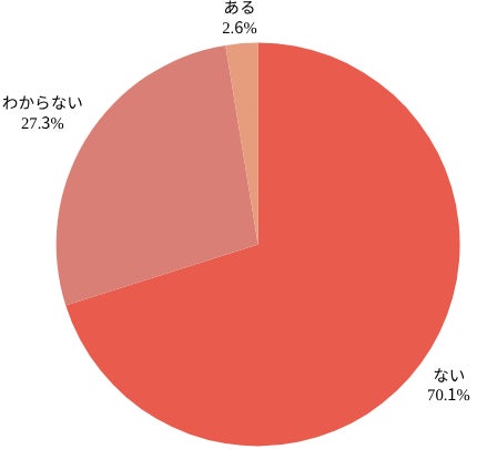 「ない」との回答が70.1%で、「ある」との回答(2.6%)を大きく上回った。