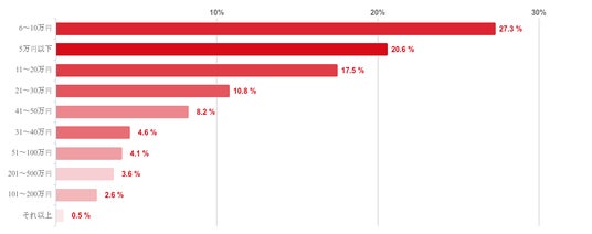 また、「5万円以下」が20.6%、「11~20万円」が17.5%でこれに続いた。